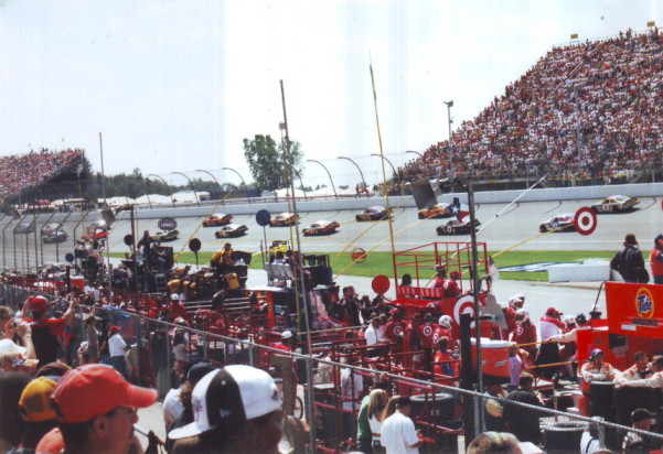 The race was held at Michigan International Speedway, a two-mile (3.2 km) moderate-banked D-shaped speedway located in Brooklyn, Michigan. The track is used primarily for NASCAR events. It is known as a "sister track" to Texas World Speedway as MIS's oval design was a direct basis of TWS, with moderate modifications to the banking in the corners, and was used as the basis of Auto Club Speedway. The track is owned by International Speedway Corporation. Michigan International Speedway is recognized as one of motorsports' premier facilities because of its wide racing surface and high banking (by open-wheel standards; the 18-degree banking is modest by stock car standards).